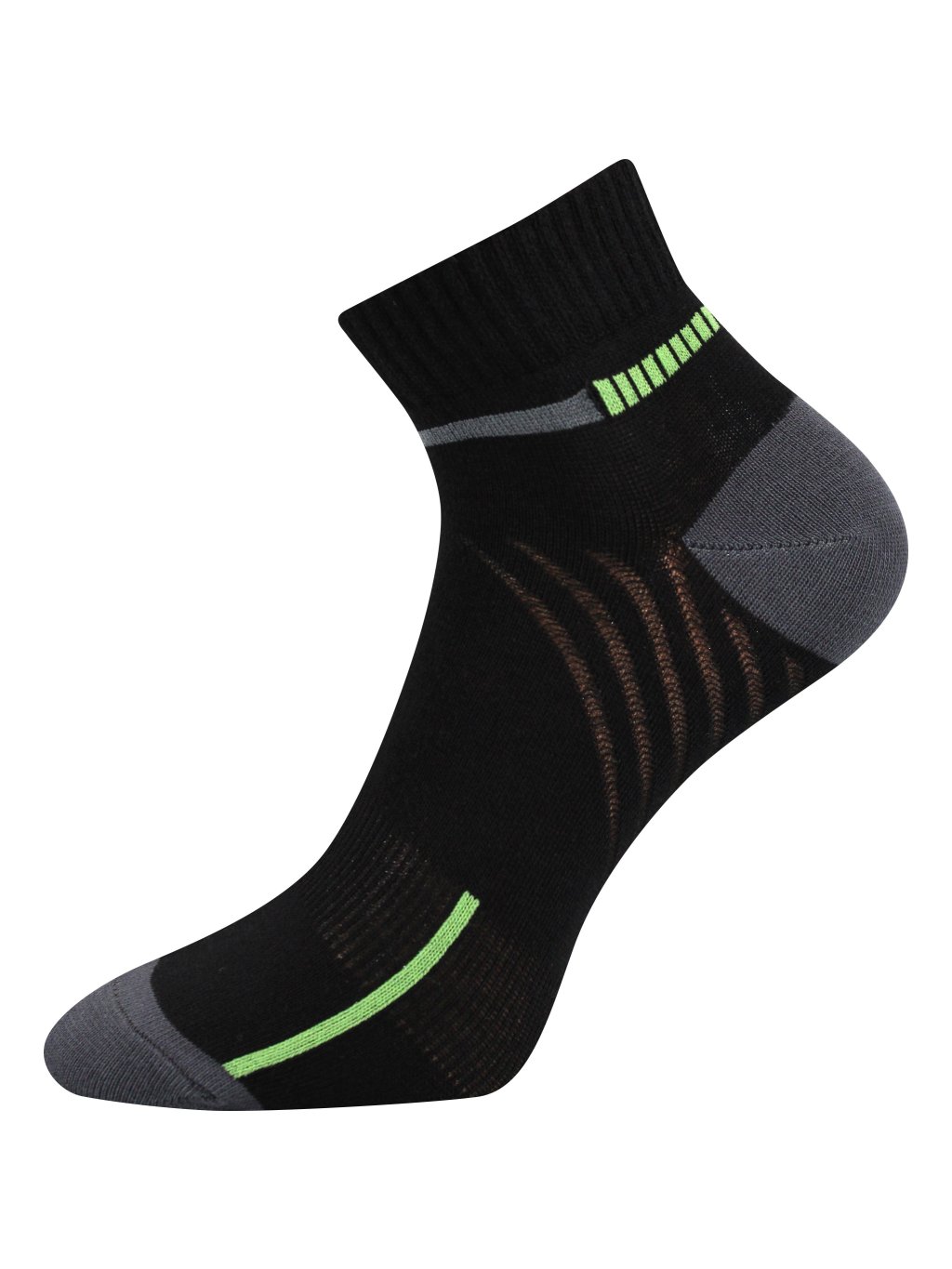 Športové slabé ponožky z hladkého úpletu sú vhodné na letné aktivity aj vďaka priedušným odvetrávacím zónam. Majú strednú výšku tesne ku členku a pohodlný a jemný lem , ktorý nesťahuje. Letné ponožky balenie obsahuje 3 páry ponožiek v tmavých farbách. Dostupné sú aj v nadmernej veľkosti.