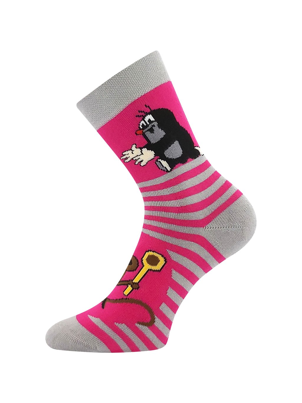 Detské jemné froté ponožky Boma® KRTEK FROTÉ sú z príjemnej bavlny s podielom elastanu, takže sú príjemné na pokožke ale zároveň sú pružné a dobre si držia tvar a ľahko sa obliekajú, vaše deti si ich hneď obľúbia! Sú mäkké a hrejivé, nesťahujúce pigue lem sa nezarezáva do pokožky. Špica je uzavretá náročnejším retiazkovaním, vďaka ktorému je spoj dokonale hladký a nehrozí, že ponožka bude tlačiť . Obrázkové ponožky predávame vo výhodnom balení 3 párov v mixe farieb pre dievčatá alebo chlapcov.