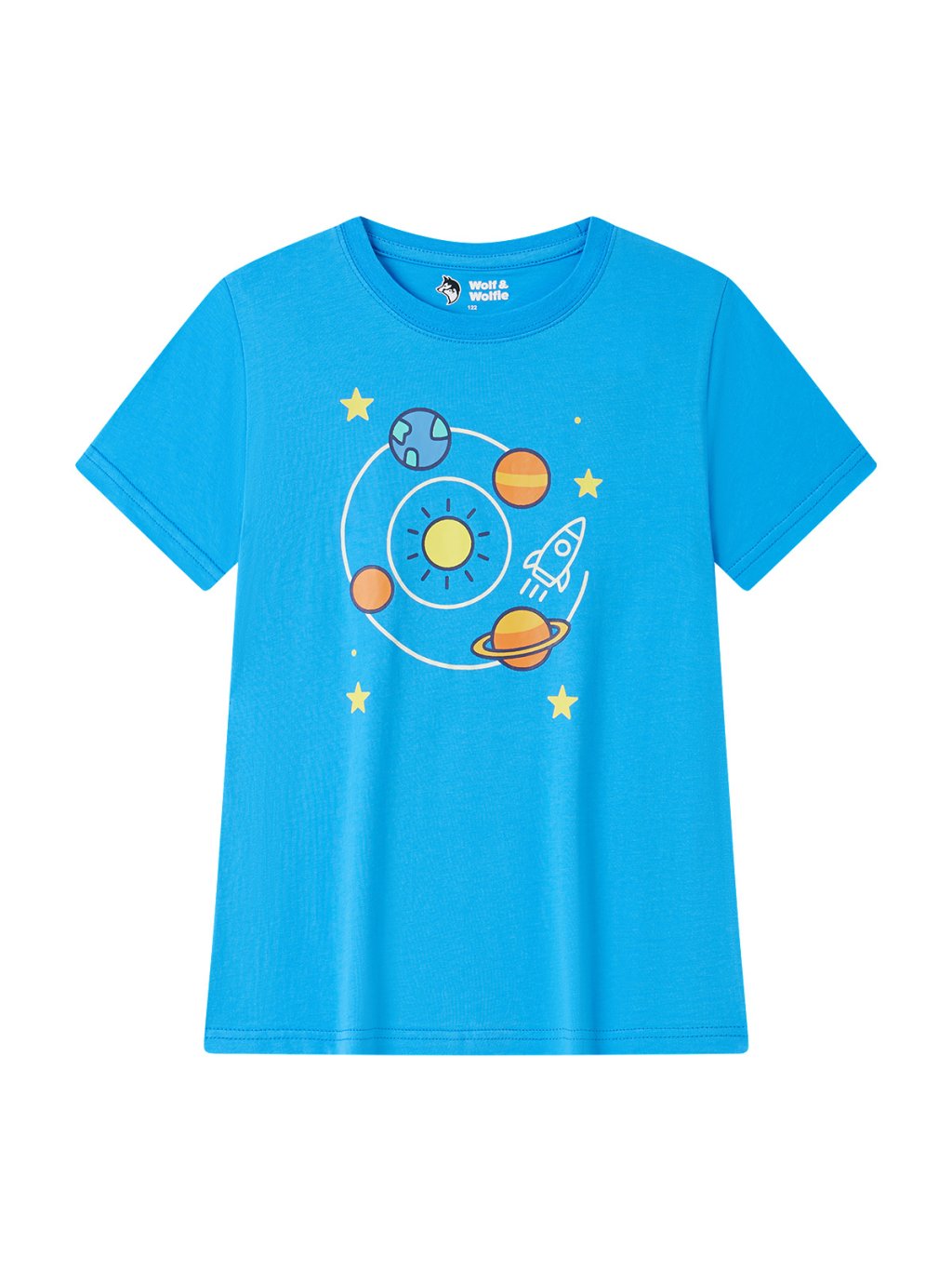 Chlapčenské bavlnené pyžamo s krátkym rukávom - Wolf & Wolfie S2661, modrá