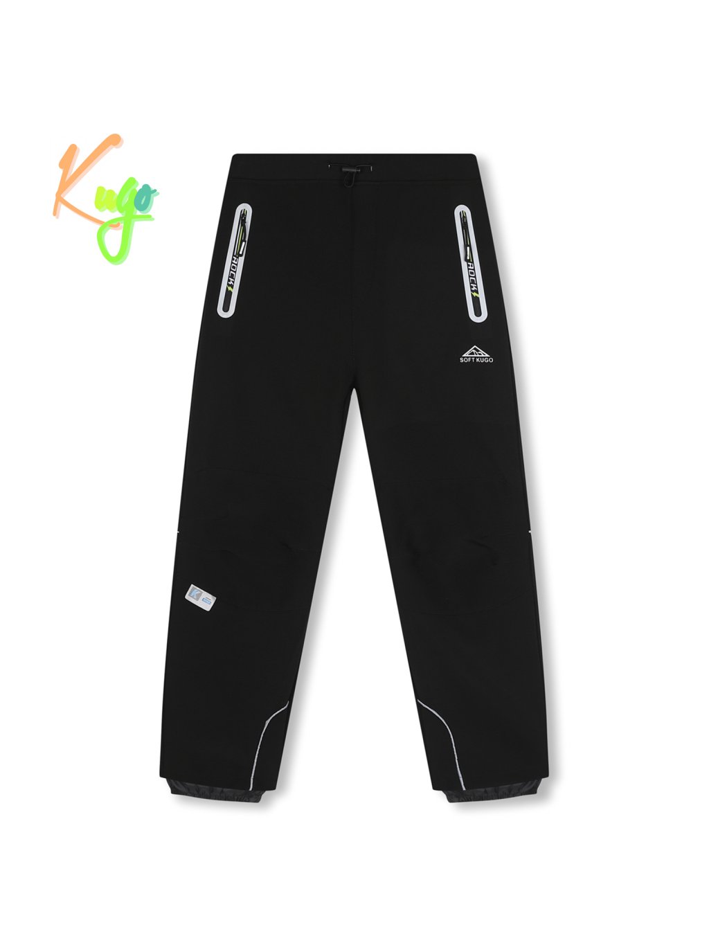 Chlapčenské softshellové nohavice, zateplené - KUGO HK2520, čierna / signálne zipsy
