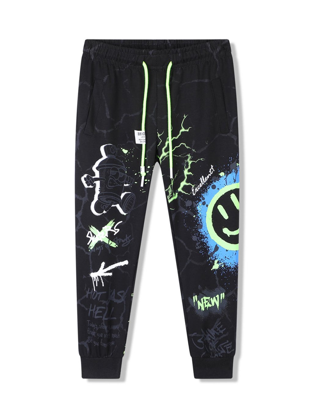 Chlapčenské tepláky - KUGO LT1503, čierna / neónovo zelená šnúrka