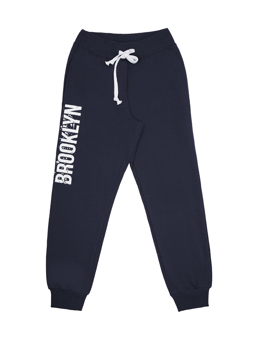 Chlapčenské bavlnené tepláky s nápisom, v páse na gumu, dve vrecká