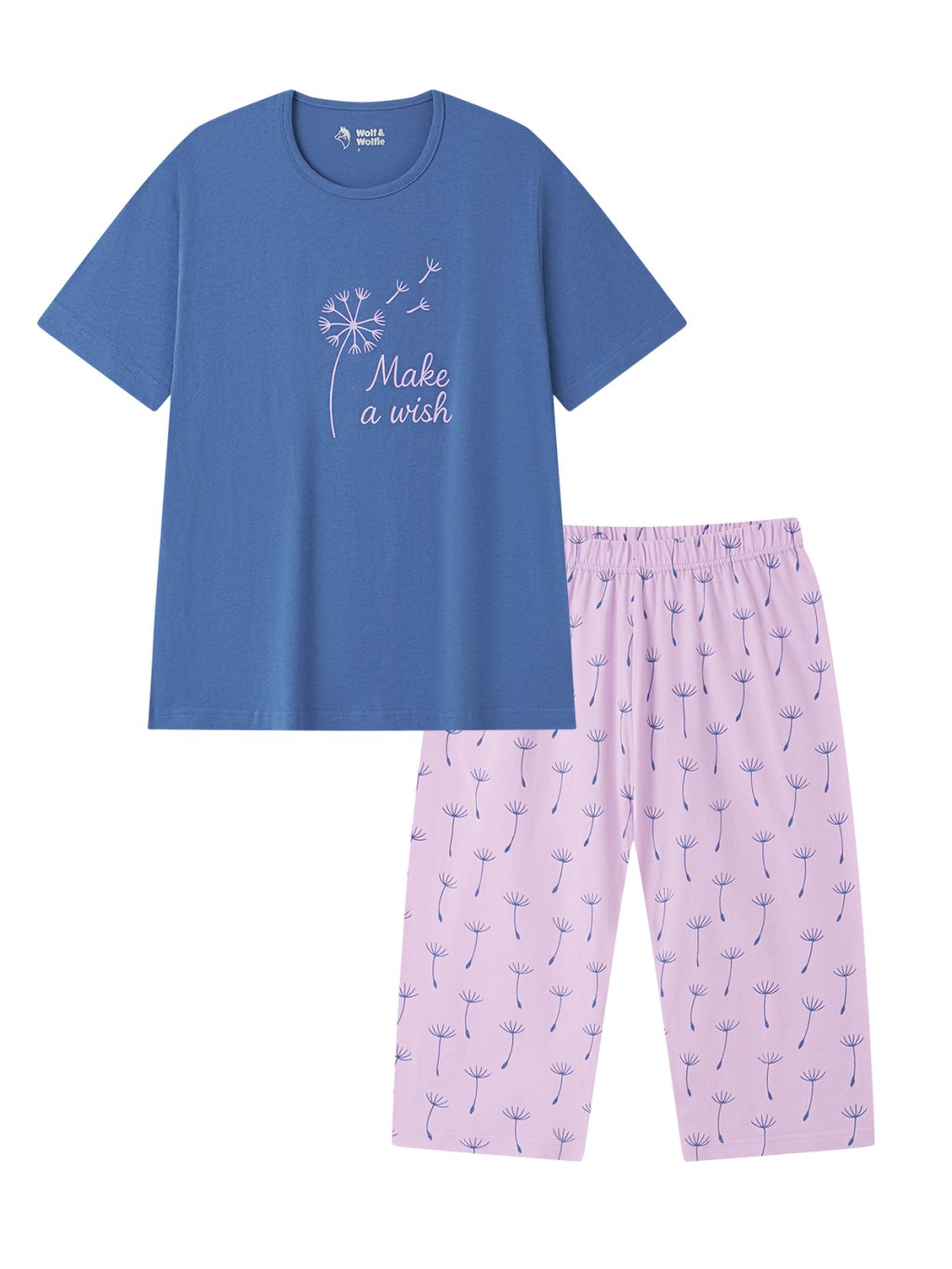 Dámske bavlnené pyžamo s krátkym rukávom - Wolf & Wolfie D2635, tmavo modrá / fialková