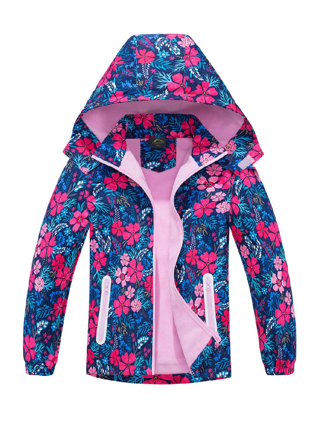 Dievčenská jesenná bunda, zateplená - KUGO B2998, tmavo modrá / kvety