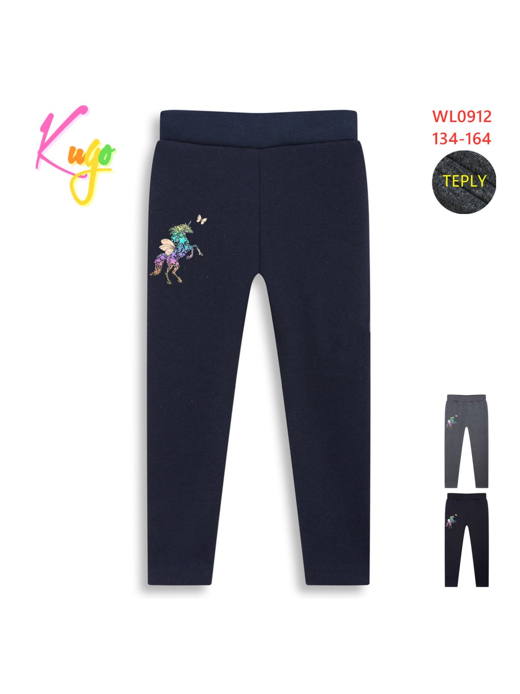 Dievčenské legíny s aplikáciou, zateplené - KUGO WL0912, tmavo modrá