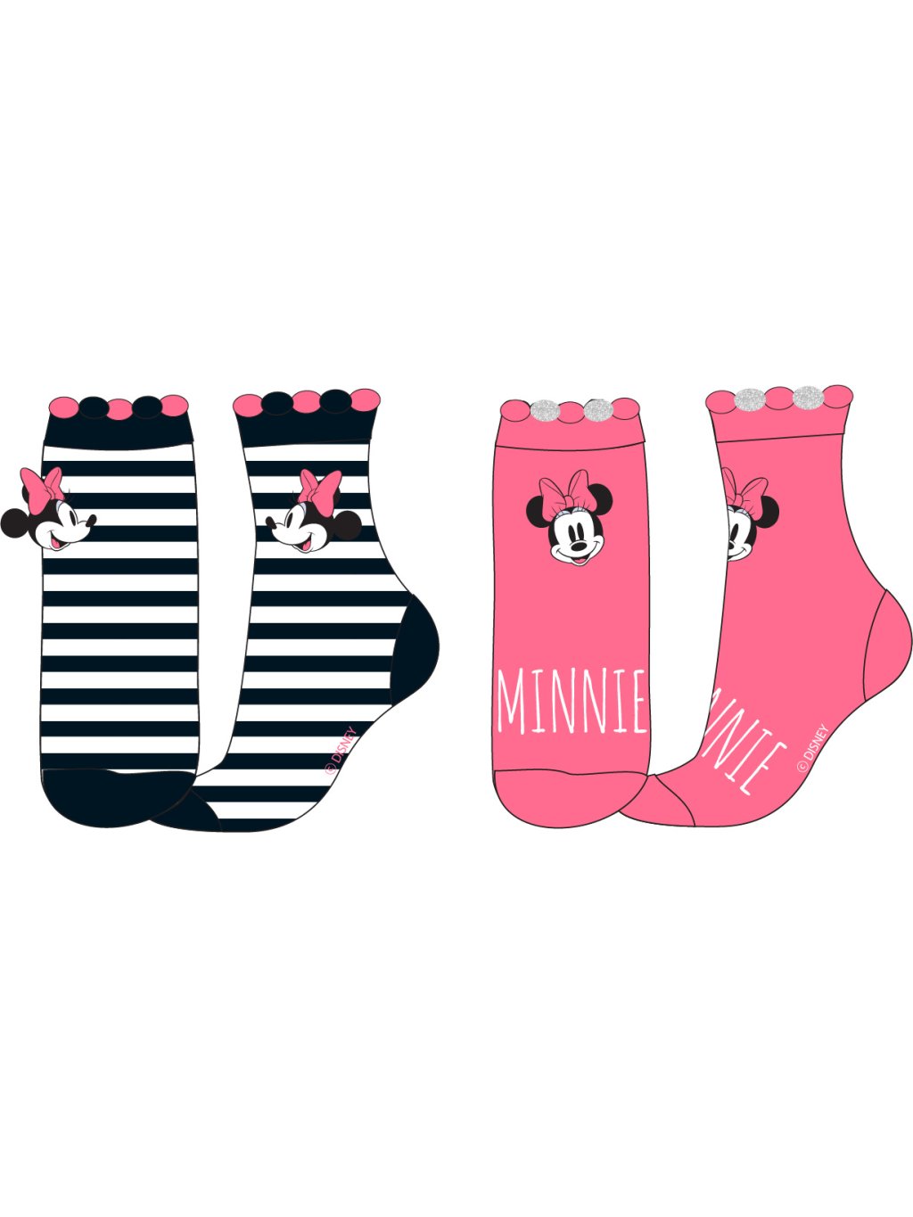 Súprava 2 párov dievčenských ponožiek s motívom Minnie Mouse.