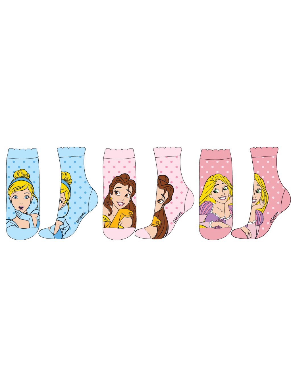 Súprava 3 párov klasických dievčenských ponožiek s motívom Disney Princess.