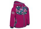 Dievčenská softshellová bunda bez zateplenia - Unuo Kvetinky, tmavo ružová/ malinová