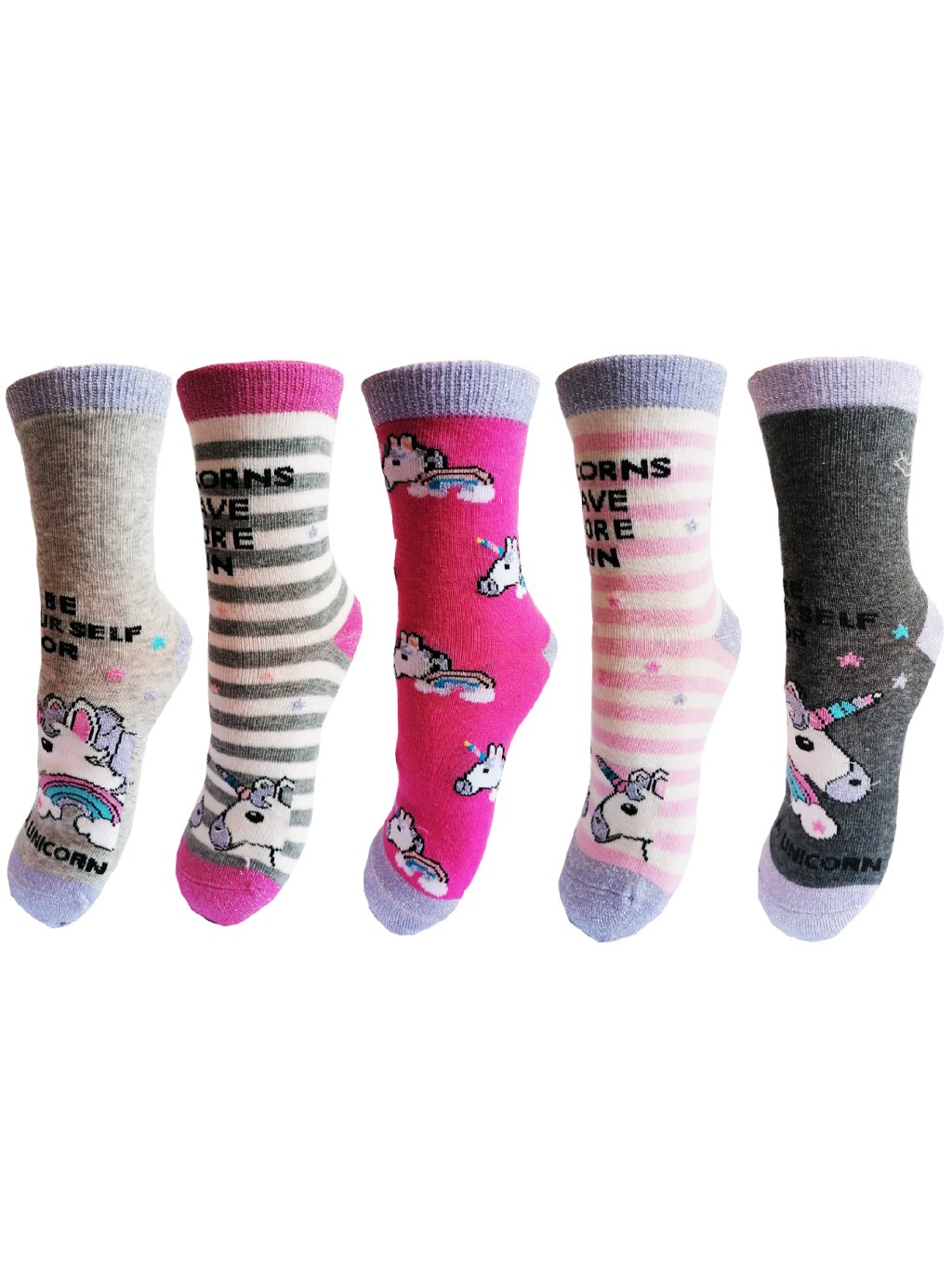 Súprava 5 párov dievčenských ponožiek s jednorožcami