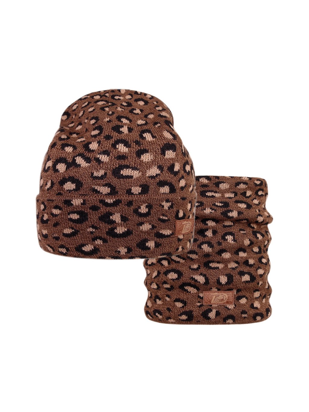 Merino pletená čiapka a nákrčník Dráča - Urban 21, hnedá / béžová