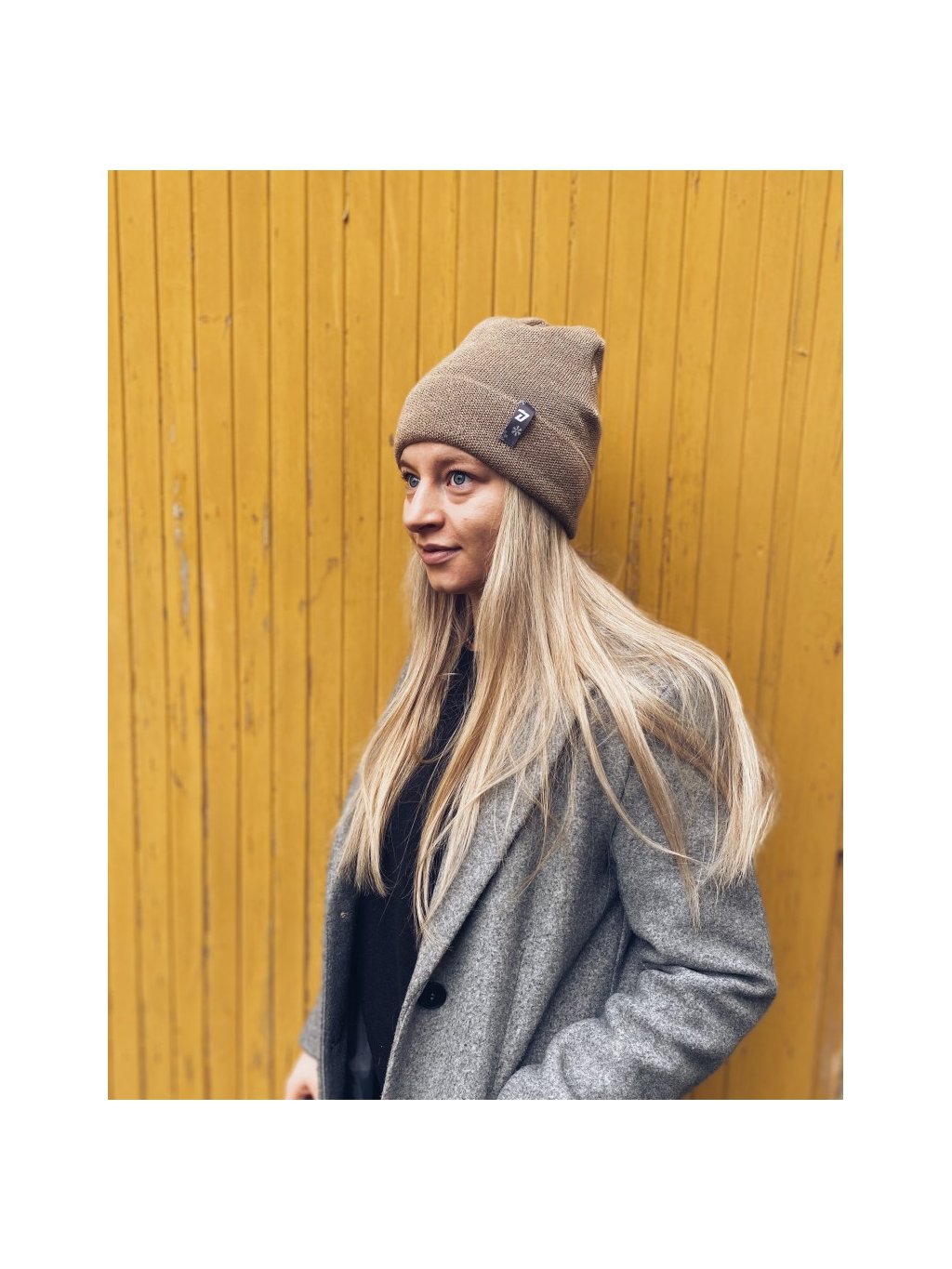 Zimná pletená čiapka z jemnej Merino vlny v modernom strihu, podšitá hrejivou čelenkou z počesanej bavlny.