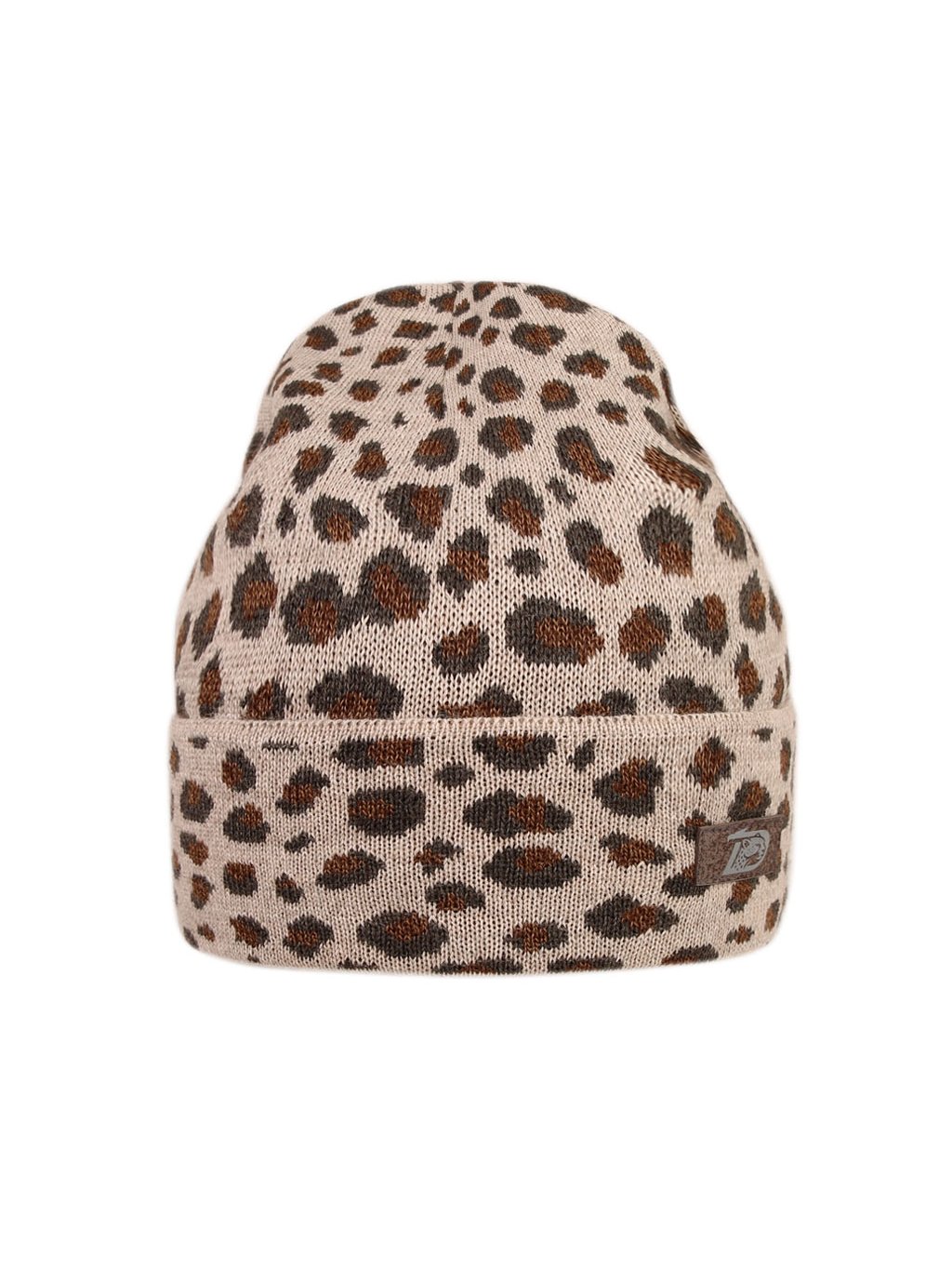 Merino pletená čiapka Dráča - Urban 19, svetlo hnedá / šedá - leopard