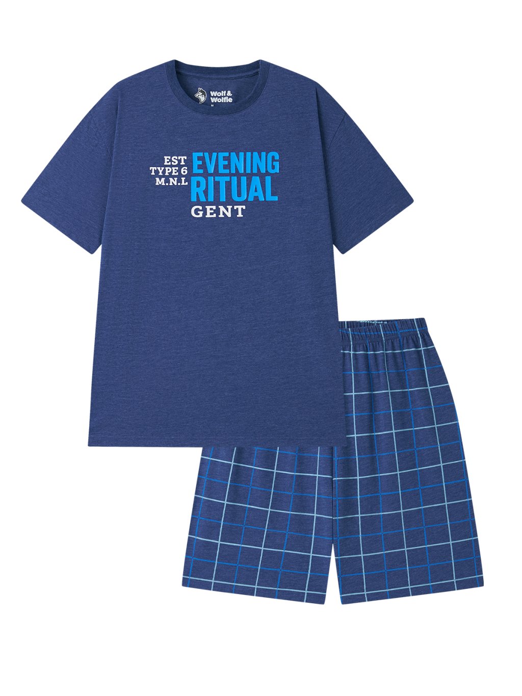 Pánske bavlnené pyžamo s krátkym rukávom - Wolf & Wolfie S2675A, modrá