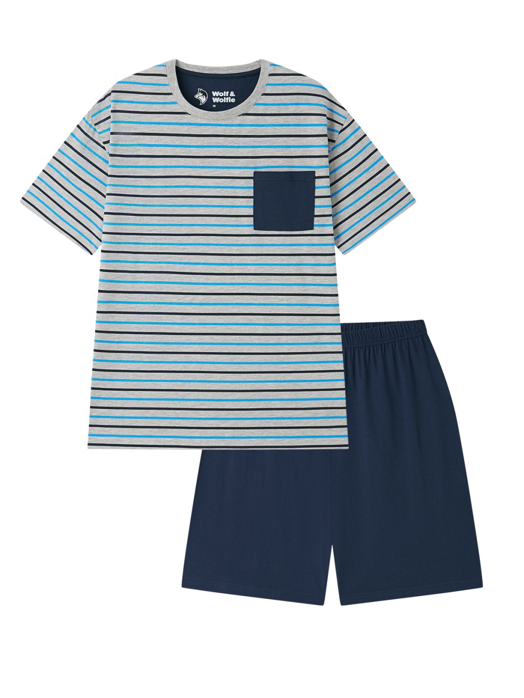 Pánske bavlnené pyžamo s krátkym rukávom - Wolf & Wolfie S2675B, šedý prúžok