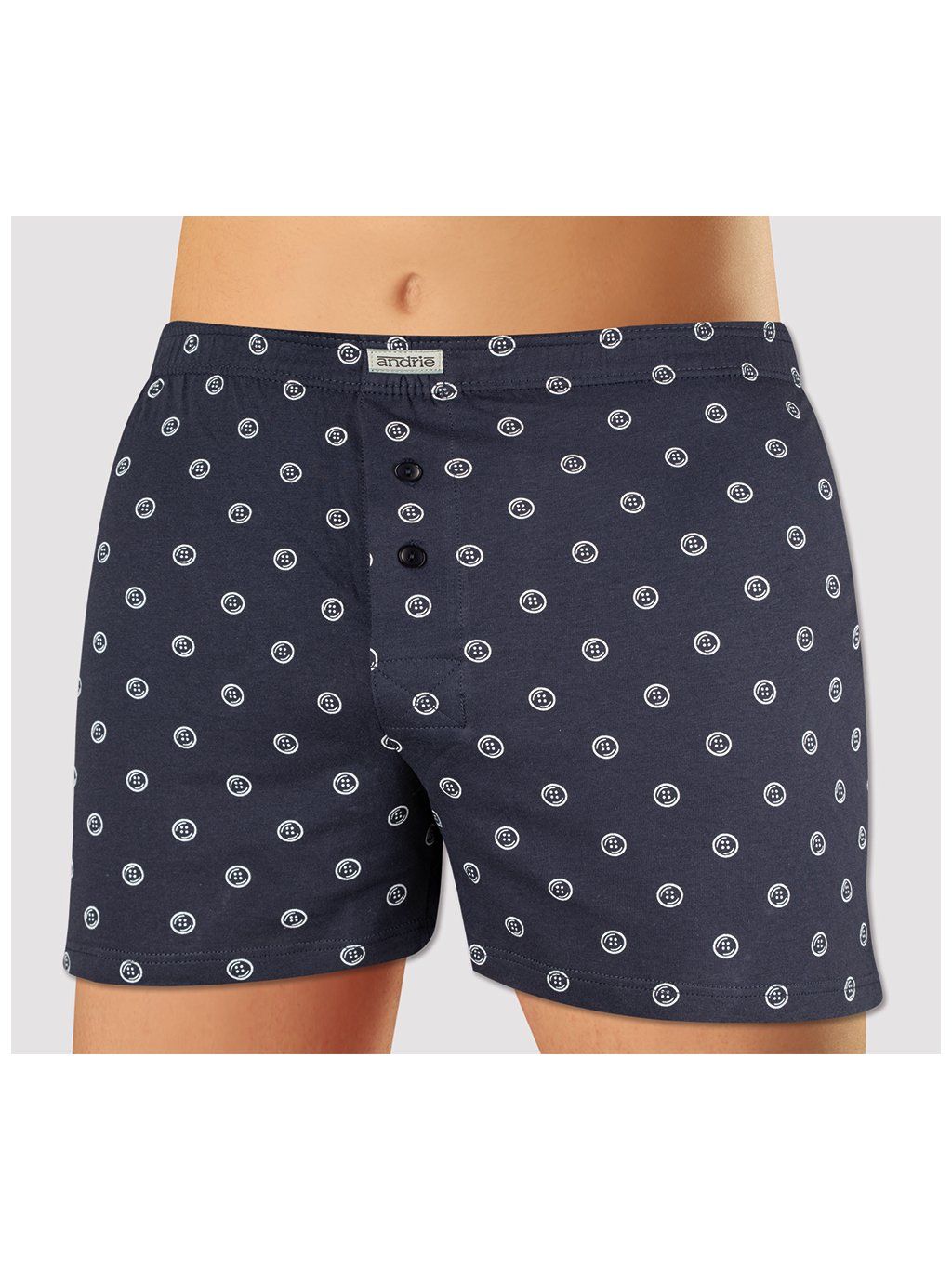 Pánske trenírky Andrie so zakrytou mäkkou gumou v páse sú vyrobené z kvalitnej bavlny. Na nohaviciach sú malé rázporky pre väčší komfort a pohodlie. Rázporok s rozopínaním na dva gombíky.