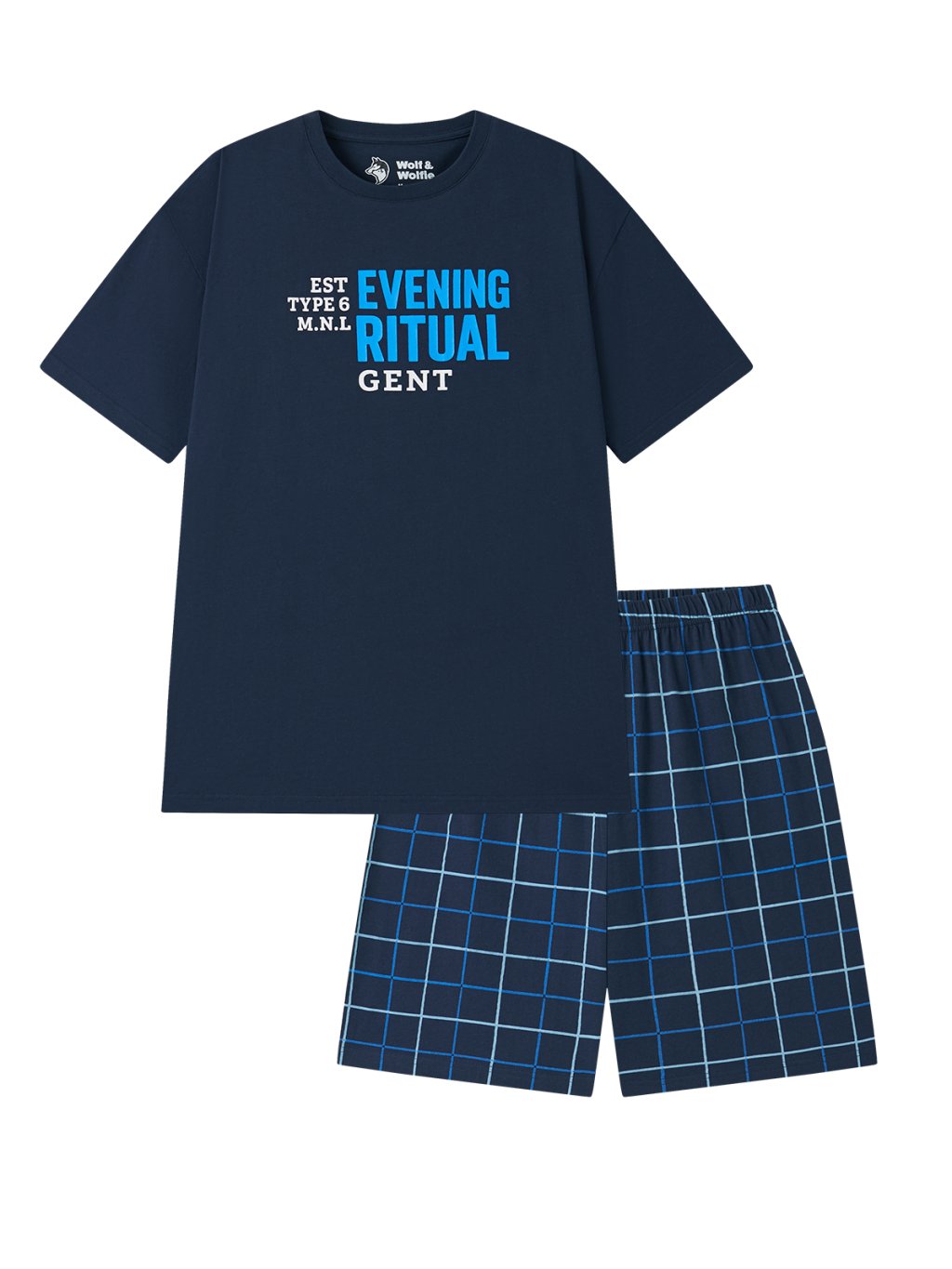 S2675A Pánske bavlnené pyžamo s krátkym rukávom - Wolf & Wolfie S2675A, tmavo modrá
