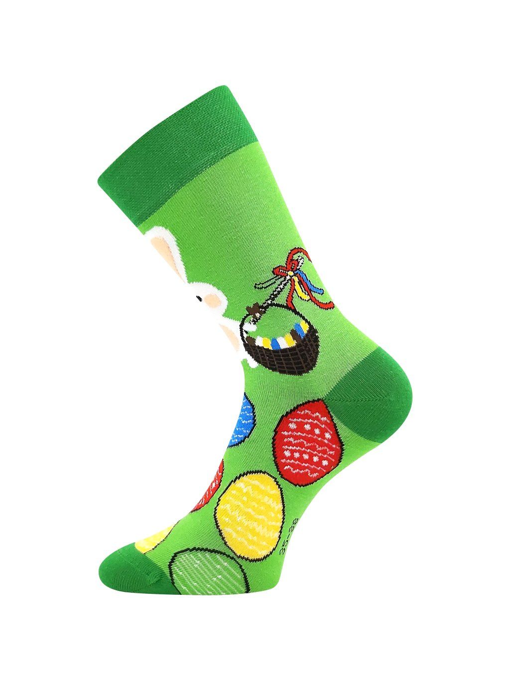 Originálne veselé veľkonočné ponožky sú štýlové a hravé ponožky, ktorými môžete skvele vyjadriť svoju náladu alebo zmysel pre detail. Klasické ponožky a ich jedinečný dizajn zaručene rozosmeje každého škarostráda! Oblečte si pohodlné ponožky Lonka , s retiazkovanou špicou , ktorá netlačí a netvorí otlaky ani pľuzgiere. Nesťahujúci pique lem nikde neškrtí, vhodný aj na každodenné nosenie.